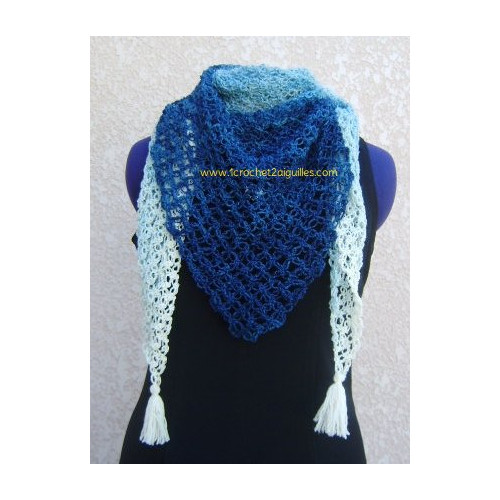 Un châle triangulaire au crochet, réalisé dans un fil très léger, 100% BB mérinos teint à la main, qualité "gradienr" de chez "1ou2mailles"